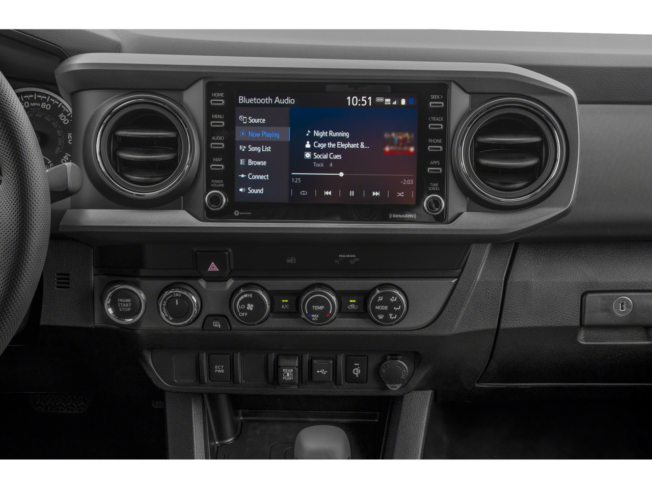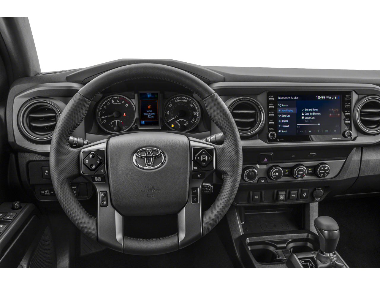 TRD Off Road Package (120V/400W Deck Mounted AC Power, Black Overfenders, Engine Immobilizer, Power Sliding Rear Window w/Privacy Glass, and Smart Key w/Push Button Start), 4WD, 6 Speakers, ABS brakes, Air Conditioning, Alloy wheels, AM/FM radio: SiriusXM, Anti-whiplash front head restraints, Apple CarPlay/Android Auto, Auto High-beam Headlights, Auto-dimming Rear-View mirror, Axle Ratio: 3.91, Blind Spot Monitor w/Rear Cross Traffic Alert, Brake assist, Bumpers: body-color, Chrome Rear Bumper, Driver door bin, Dual front impact airbags, Dual front side impact airbags, Dual Zone Automatic Climate Control, Electronic Stability Control, Emergency communication system: Safety Connect with 1-year trial, Exterior Parking Camera Rear, Fabric Seat Trim (FD), Front anti-roll bar, Front Bucket Seats, Front Center Armrest, Front fog lights, Front reading lights, Front wheel independent suspension, Heated door mirrors, Illuminated entry, Knee airbag, Leather Seat Trim, Leather Shift Knob, LED Daytime Running Lights & Fog Lights, Low tire pressure warning, Occupant sensing airbag, Outside temperature display, Overhead airbag, Overhead console, Panic alarm, Passenger door bin, Power door mirrors, Power driver seat, Power steering, Power windows, Radio: AM/FM/HD Radio, Radio: Premium w/AM/FM/Nav/App Suite, Rear Parking Assist Sonar, Rear step bumper, Remote keyless entry, Security system, Speed control, Speed-sensing steering, Split folding rear seat, Steering wheel mounted audio controls, Tachometer, Telescoping steering wheel, Tilt steering wheel, Traction control, Trip computer, Turn signal indicator mirrors, Variably intermittent wipers, and Wheels: 16 x 7J Machined Contrast Alloy.