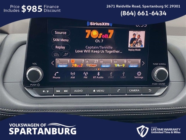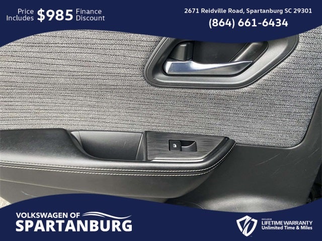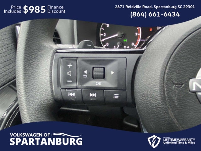 CARFAX 1-Owner, Clean CARFAX, Lifetime Powertrain Warranty, 18 Aluminum Alloy Wheels, Automatic temperature control, Front dual zone A/C, Fully automatic headlights, NissanConnect featuring Apple CarPlay and Android Auto, Rear Parking Sensors. 🌟 Welcome to the All-New Volkswagen of Spartanburg! 🚗✨ We are excited to introduce our latest lineup of Volkswagen vehicles and quality pre-owned options of all makes and models. At Volkswagen of Spartanburg, we are committed to providing exceptional customer service. Our knowledgeable and friendly sales team is ready to assist you in finding the perfect vehicle that fits both your lifestyle and budget. We are dedicated to ensuring that your car-buying journey is seamless and enjoyable from start to finish. 📍 Visit Us Today at Volkswagen of Spartanburg: Come in and see for yourself why we are the leading Volkswagen dealership in the area: 2671 Reidville Rd, Spartanburg, SC 29301 or call us at (864) 585-2492. We look forward to welcoming you and helping you drive away in your dream car! 30/37 City/Highway MPG