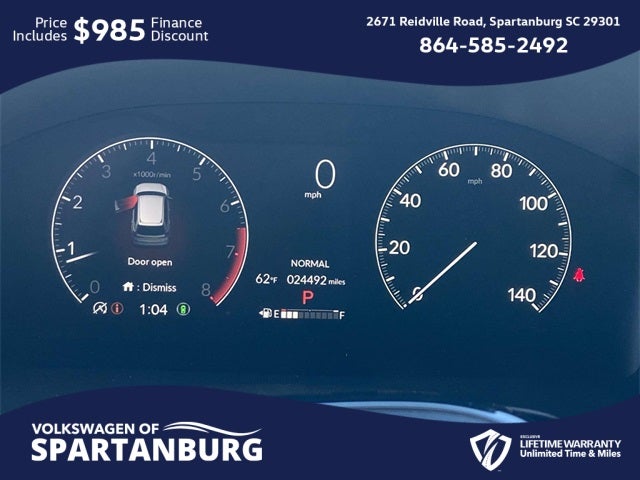 CARFAX 1-Owner, Lifetime Powertrain Warranty, Automatic Headlights, LEATHER SEATS ,, MOONROOF ,, BACKUP CAMERA ,, Bluetooth® ,, APPLE CARPLAY / ANDROID AUTO ,, Streaming Music, USB Charging Ports, SUPER CLEAN, GREAT CONDITION, PRICED TO MARKET, LOCAL TRADE. 🌟 Welcome to the All-New Volkswagen of Spartanburg! 🚗✨ We are excited to introduce our latest lineup of Volkswagen vehicles and quality pre-owned options of all makes and models. At Volkswagen of Spartanburg, we are committed to providing exceptional customer service. Our knowledgeable and friendly sales team is ready to assist you in finding the perfect vehicle that fits both your lifestyle and budget. We are dedicated to ensuring that your car-buying journey is seamless and enjoyable from start to finish. 📍 Visit Us Today at Volkswagen of Spartanburg: Come in and see for yourself why we are the leading Volkswagen dealership in the area: 2671 Reidville Rd, Spartanburg, SC 29301 or call us at (864) 585-2492. We look forward to welcoming you and helping you drive away in your dream car! 28/34 City/Highway MPG