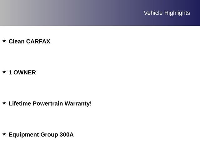 Clean CARFAX, 1 OWNER, Lifetime Powertrain Warranty!, Equipment Group 300A.